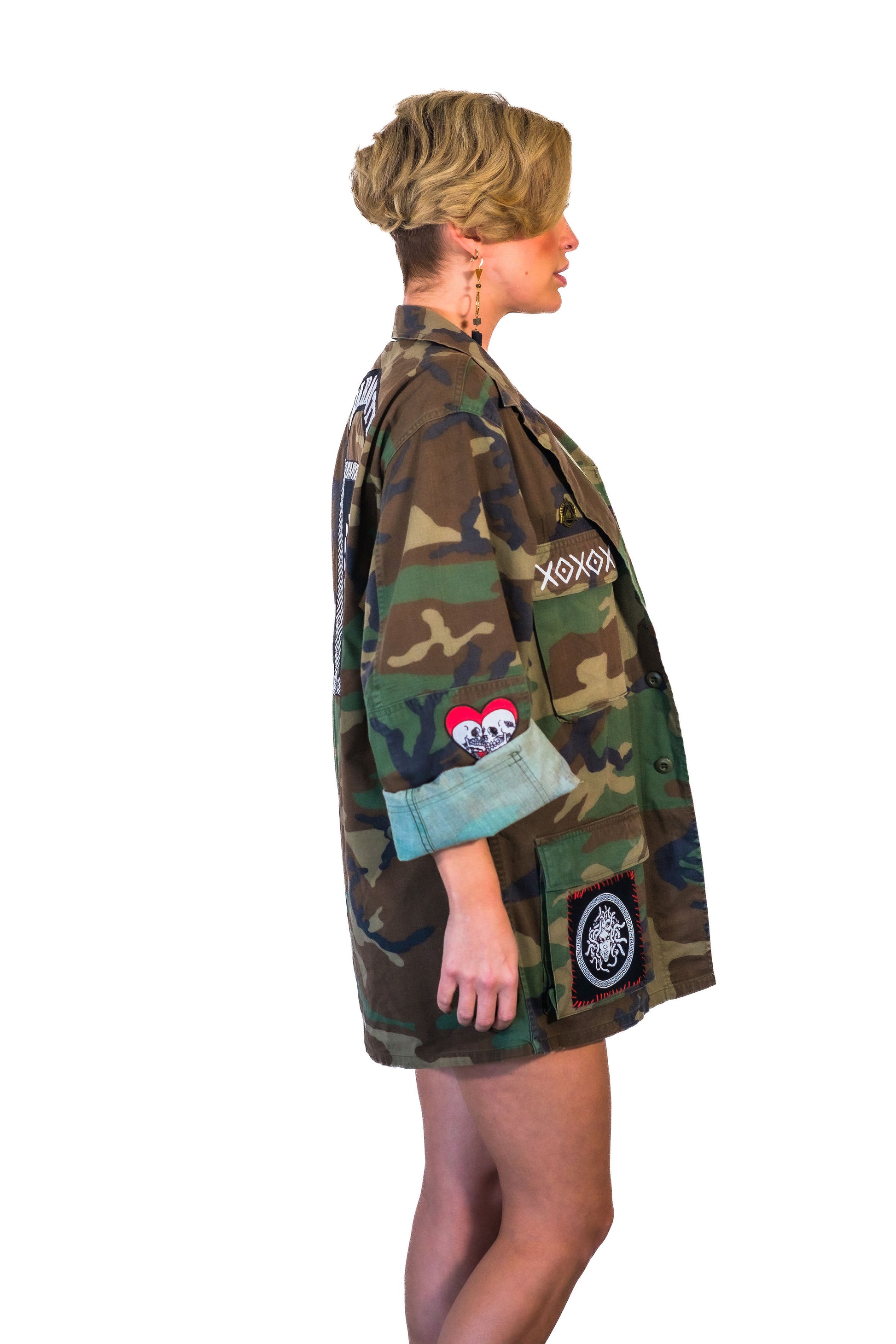 Make a statement with the Customized Vintage Camo Jacket, a limited-edition piece that fuses classic military style with bold, handcrafted artistry. Each jacket is carefully customized by hand, making every piece a unique reflection of individuality, cultural energy, and soul-fueled resistance.